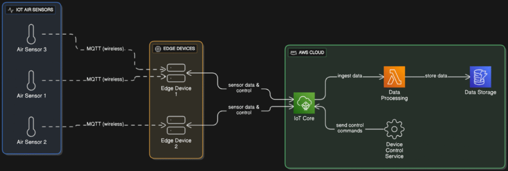 - Application Server: Stores and visualizes sensor data (e.g., Node-RED, Grafana, AWS).