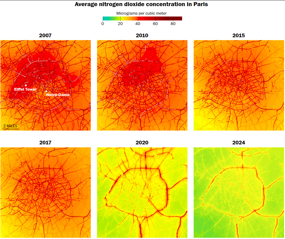 - Nitrogen dioxide levels fell by 40% in critical districts.